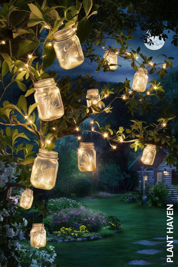 DIY alert! Fill mason jars with fairy lights or candles and hang them from tree branches. It’s a whimsical, affordable way to add some glowing charm to your garden.