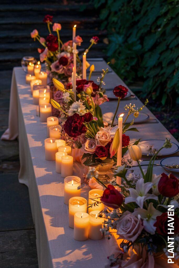 Candles are timeless. Arrange them in clusters on tables or within lanterns to create an intimate, romantic atmosphere. Add scented candles for an extra sensory treat.