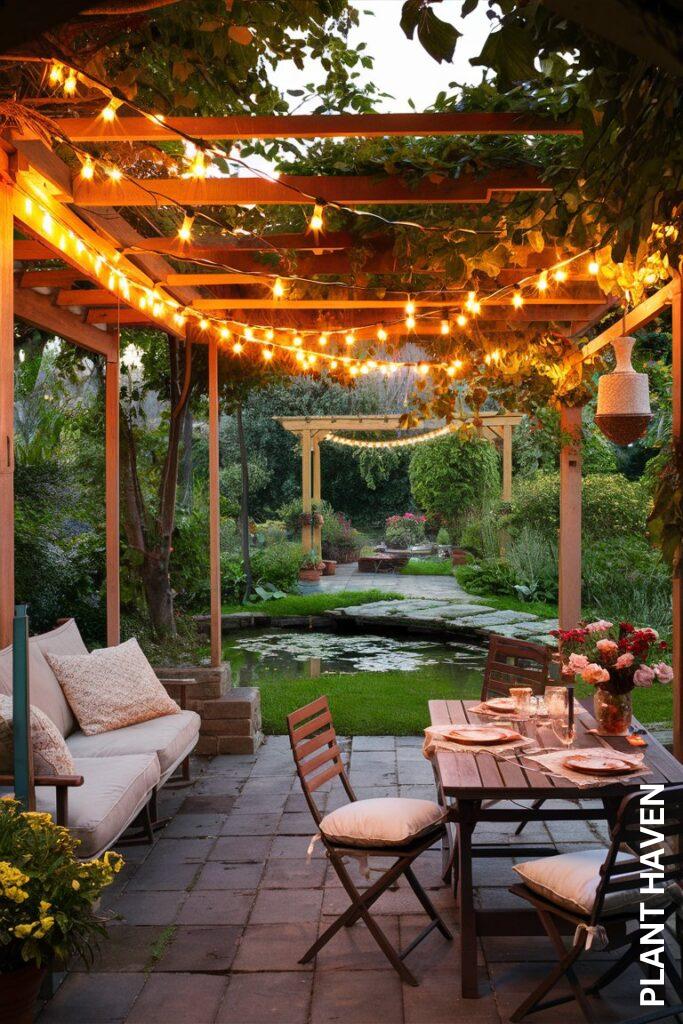 Transform your pergola into a glowing oasis. Use pendant lights, chandeliers, or string lights to create an inviting space for dining or relaxing.