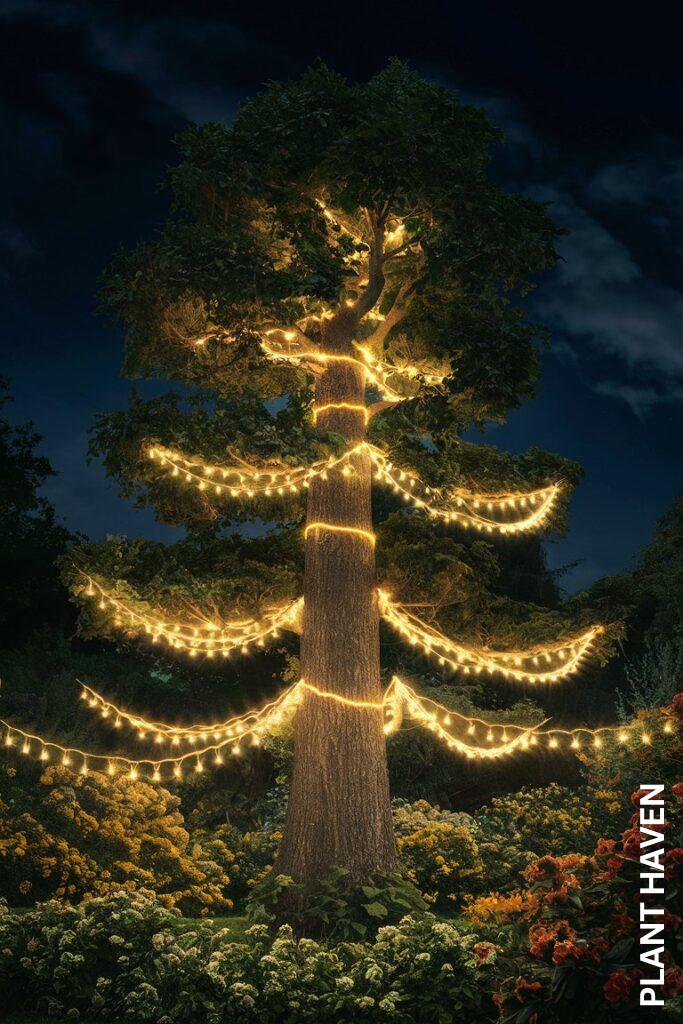 Wrap solar string lights around your tree trunks or weave them into the branches. It’s like giving your garden a hug that sparkles. They scream “romantic evening” and are ridiculously easy to install.