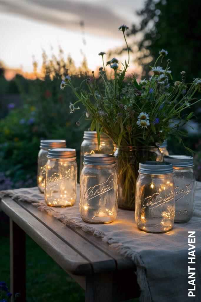 Here’s a fun DIY option. Grab a mason jar, add a solar fairy light strand, and voila—a whimsical little lantern. Scatter them around your garden or line them up on your deck railings for some serious Pinterest vibes.