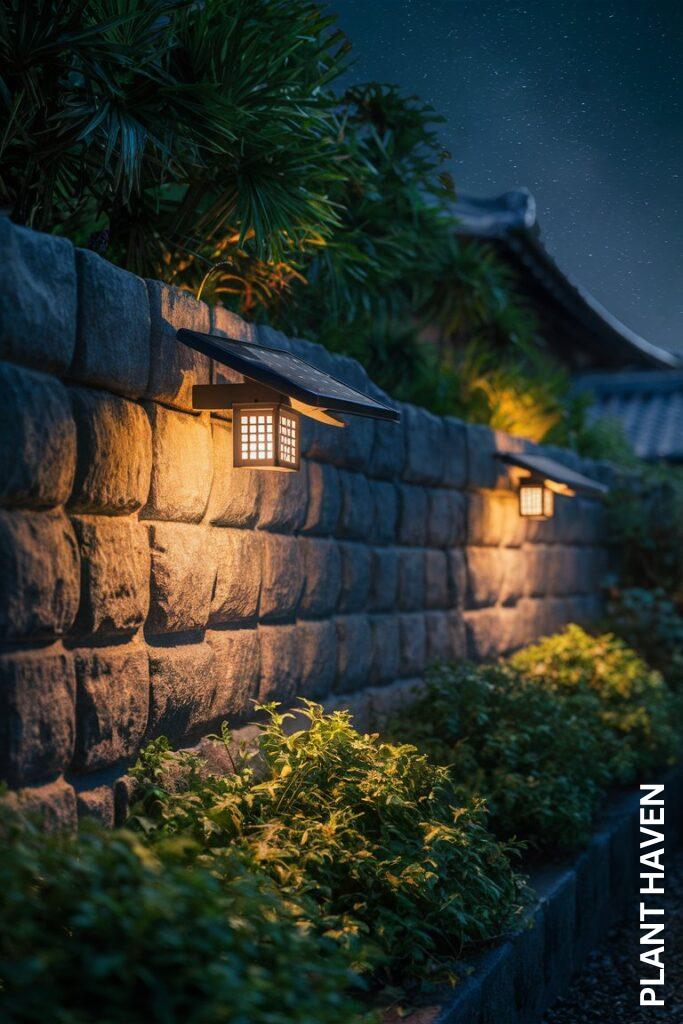 For a sleek, polished look, mount solar sconces on your garden walls or the side of your house. They’re great for layering light and adding a bit of drama to your space.
