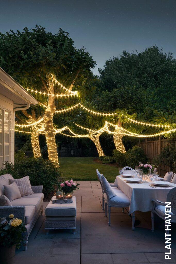 Wrap fairy lights around your bushes or shrubs for a whimsical glow. It’s like Christmas but less commitment. Perfect for casual evenings.