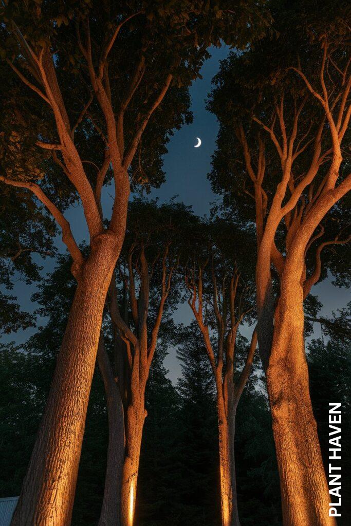 Highlight your trees like the stars they are. Place spotlights at their base, angling the light upwards—it’s dramatic, classy, and makes your yard feel like a fancy park.