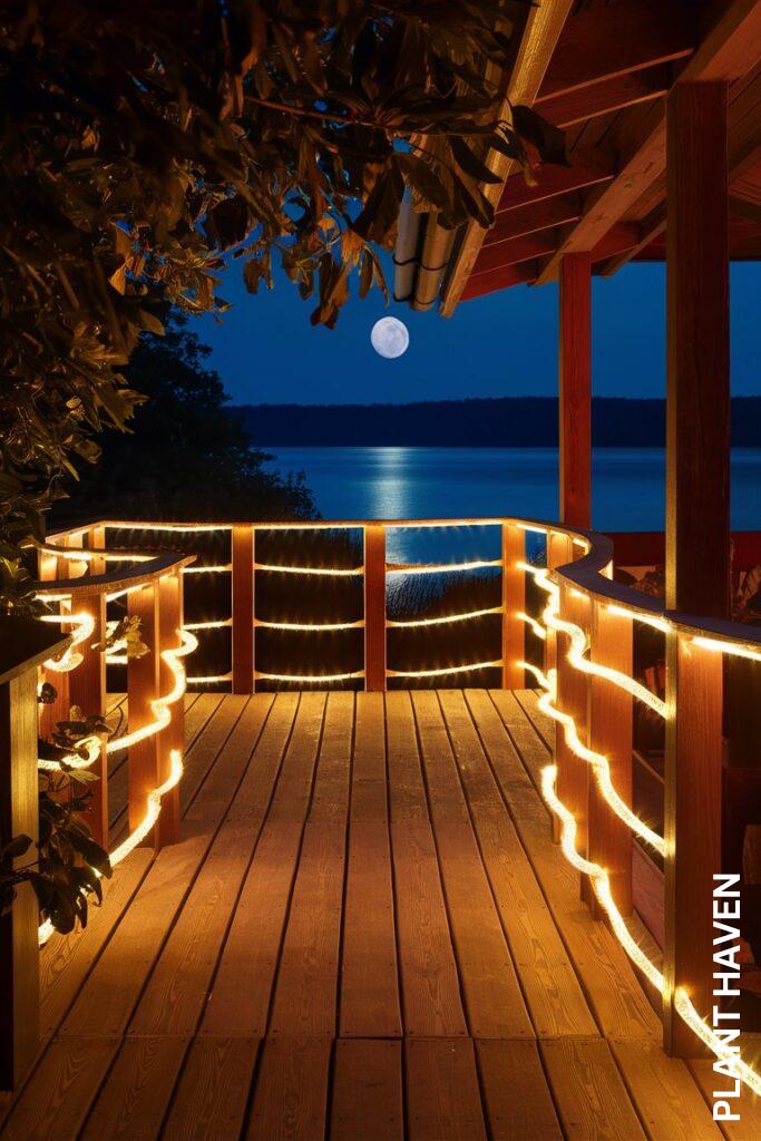 Rope lights are your deck’s new best friend. Line them under your railings or steps for subtle, modern lighting. They’re sleek, safe, and won’t blind you when you’re carrying snacks.