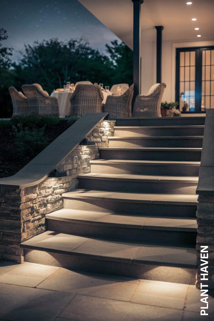 Add built-in lights to your outdoor steps. Not only do they look amazing, but they’ll save you from tripping in the dark. (Been there. Not fun.)