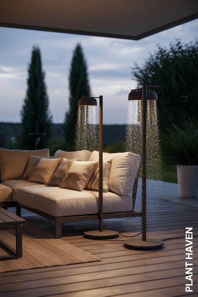For those who want something bold and different, invest in water-resistant outdoor floor lamps. They add a living room vibe to your patio and make the space feel extra cozy.