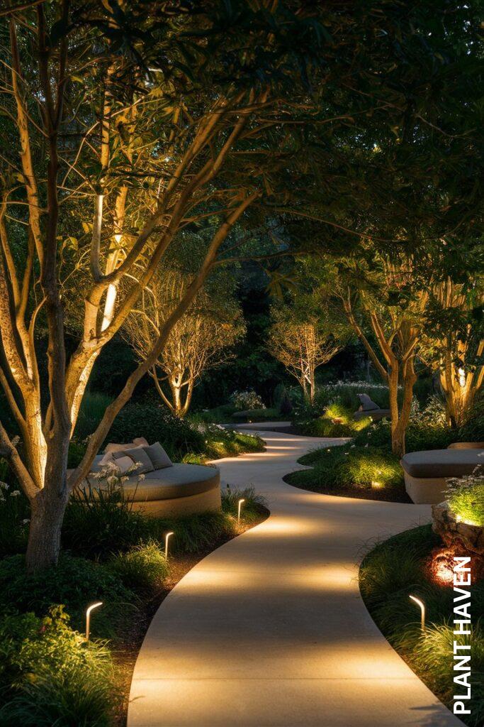 Don’t just plop down lights along the path like an airport runway. Stagger them, alternate sides, and use warm tones to keep it welcoming, not clinical.