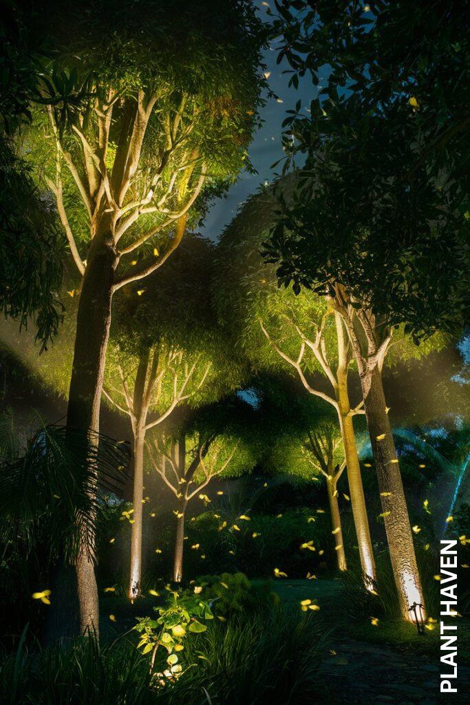 Want that soft, romantic glow? Hang lights high in trees to mimic moonlight filtering through branches. It’s subtle, elegant, and oh-so-beautiful.