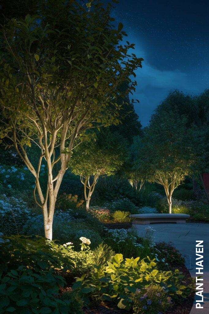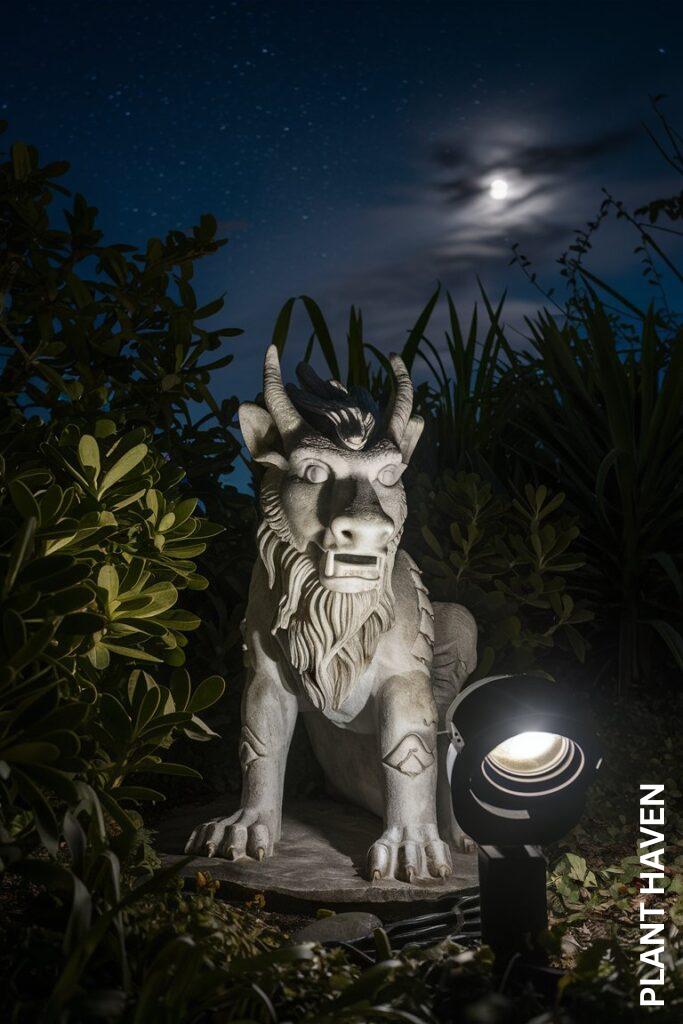 Have a favorite statue, bench, or pergola? Use a spotlight to make it a nighttime focal point.
