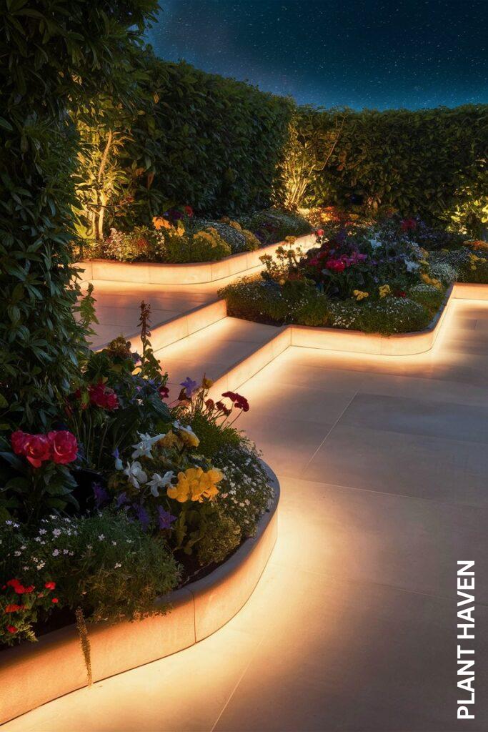 Edge lighting can make flower beds, patios, or driveways stand out while subtly guiding guests through your garden.