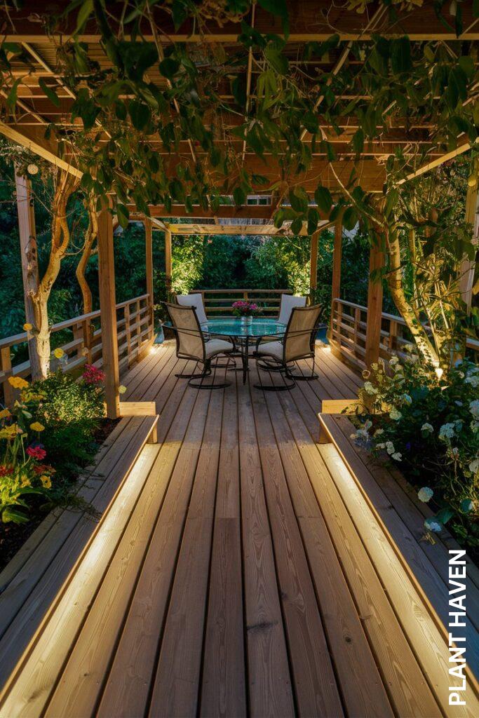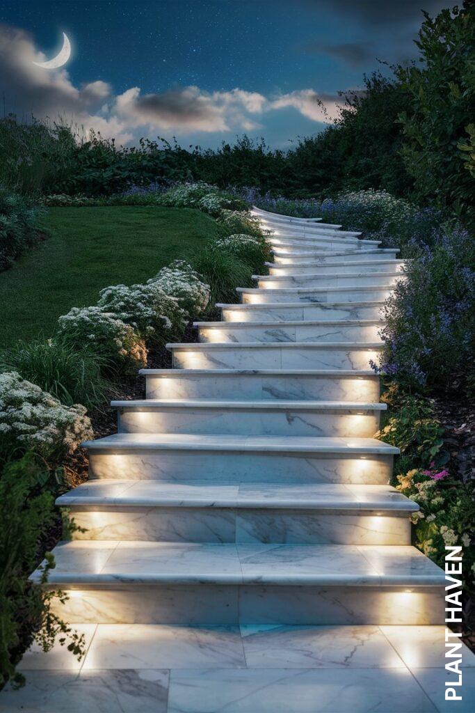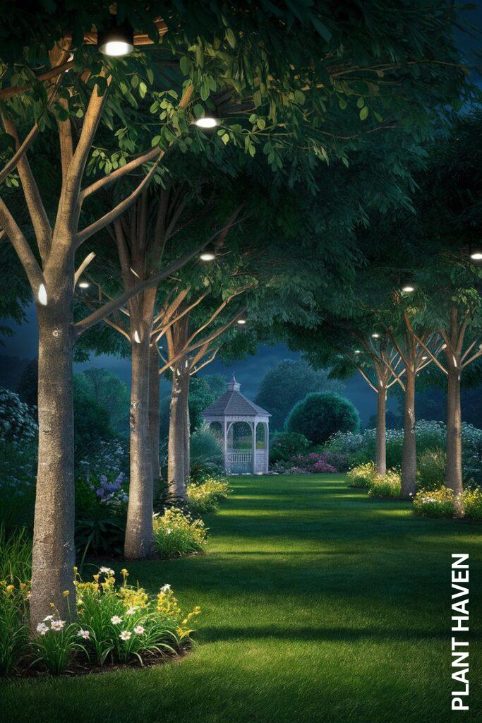Mount lights high in trees or on pergolas to mimic moonlight. It’s subtle, natural, and so, so good. I’ve done this for clients who wanted their garden to look magical but not too lit.