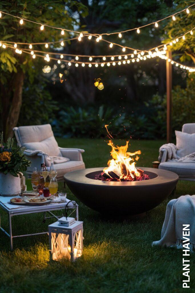 Fire pits are already a vibe, but lighting around them? Game over. Use small lights in the seating area to complement the fire’s natural glow. Perfect for s’mores nights or late-night chats.